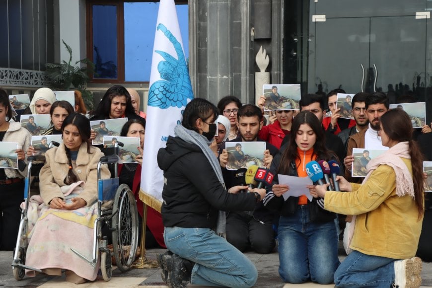 The students held up photos of Fatima and knelt in silence. The appeal was read out in Kurdish and English. “Fatima is not an ordinary student—she is part of our university, part of our future. She represents a destroyed life, a destroyed dream. What happened to her is not only an individual trauma, but a collective moral pain. What happened to her concerns us all.”
