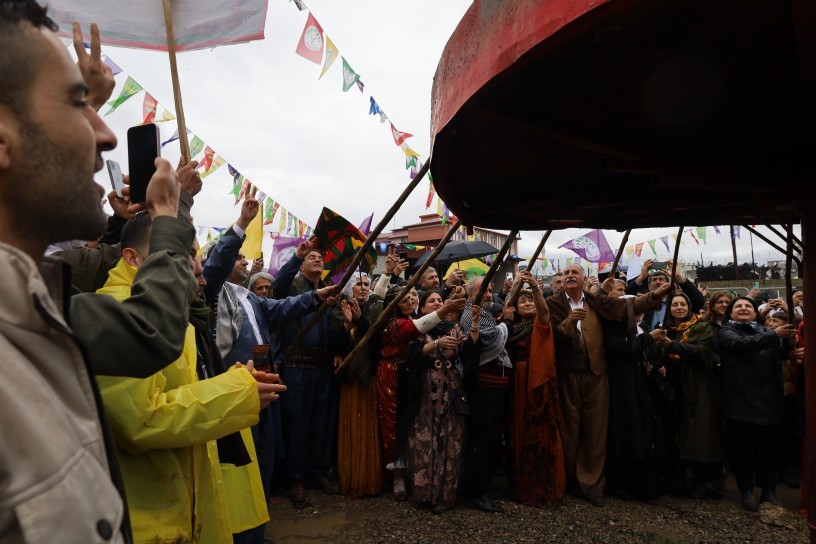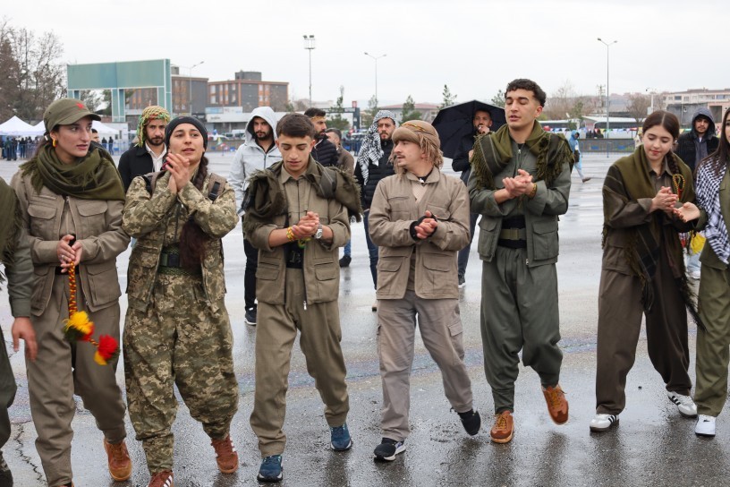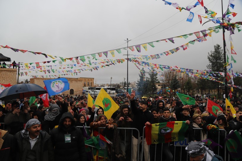 The grand Newroz celebration in Batman concluded with Kurdish traditional dances accompanied by chants of “Bijî Serok Apo” and “Bê Serok jiyan nabe” (No life without the leader).