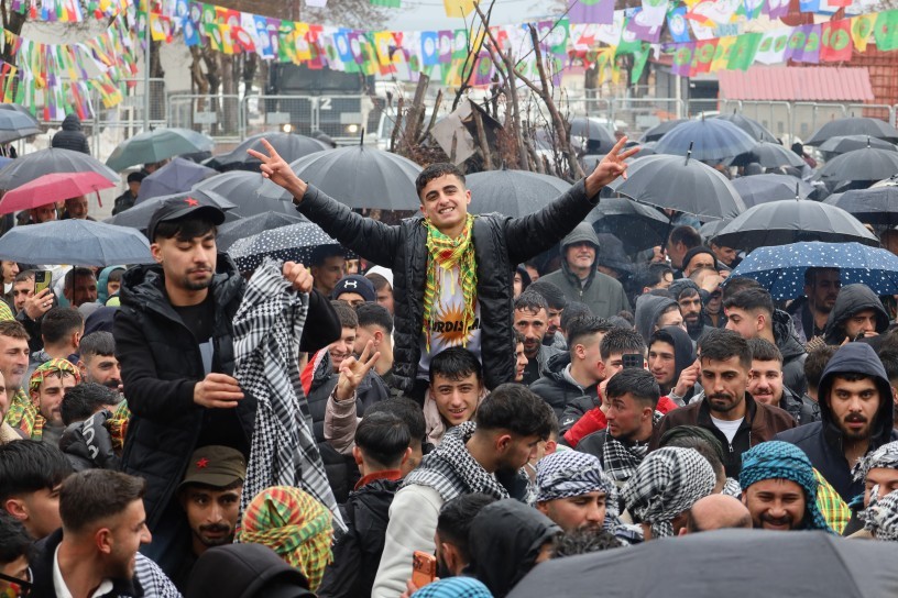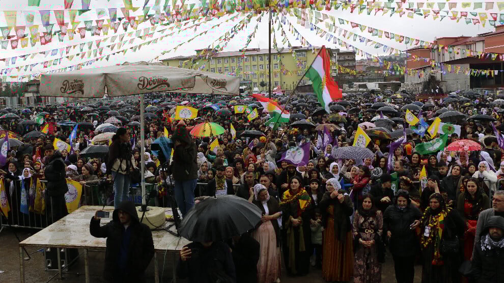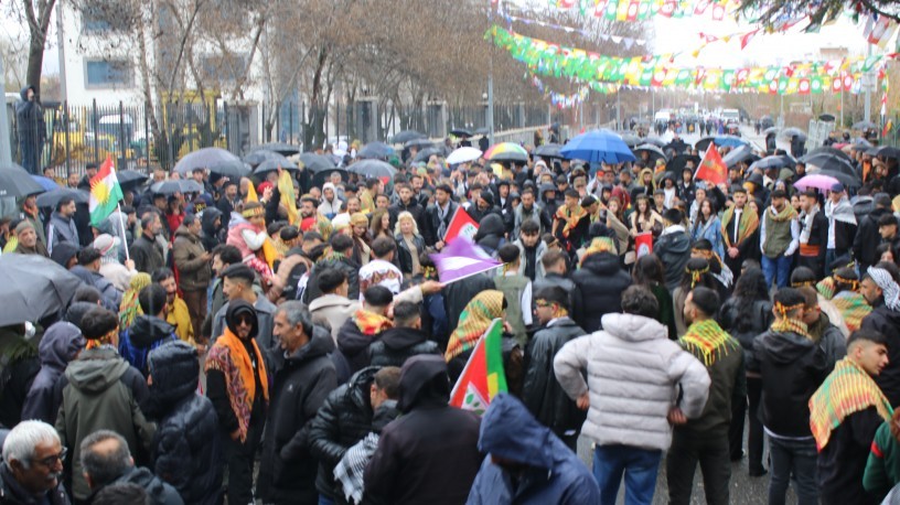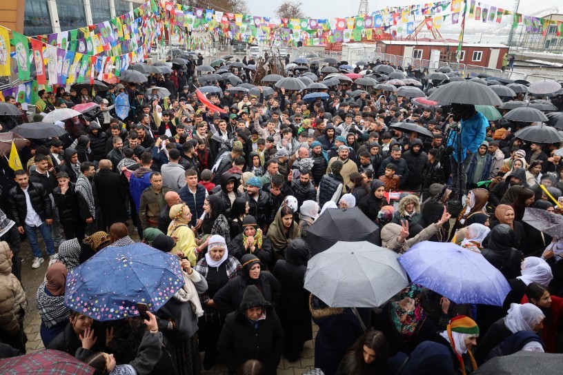 Hundreds of citizens marched from the DEM Party district building to the Newroz Area, where they held an enthusiastic celebration despite the rain.
