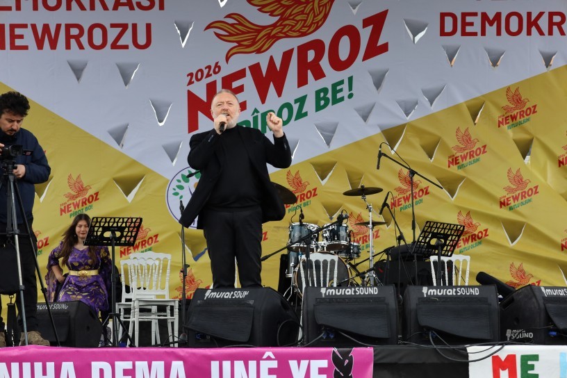 Speaking at the event, DEM Party Bitlis MP Hüseyin Olan said: “This year’s Newroz is the Newroz of Freedom and Democratic Unity. Newroz has lived for 4,000 years with the fire burning since Kawa the Blacksmith and the Assyrians. The beginning of Newroz is historically significant. In Amed, comrades set their bodies on fire against oppression, saying ‘We exist, we are fire.’ On the other hand, women have been pioneers in the Kurdish struggle. Comrade Zekiye in Amed’s citadel, Comrade Rehşan in Kadifekale, set their bodies on fire saying ‘We are here too.’ For years, the Newroz fire has grown. In the past, perhaps few of us stood in these squares; now there are millions. On this Newroz, we call out to Mr. Abdullah Öcalan on Imrali Island: Happy Newroz.”